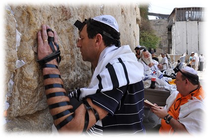 TEFILIN – A função do uso deste objeto é diariamente, ao usá-lo, recordar os mandamentos da lei judaica. Usado na cabeça com a caixa no centro da testa e a outra na parte superior do braço esquerdo próximo ao coração. O tefilin deve ser usado durante as rezas da manhã e da noite, exceto no shabat, como indica a oração.