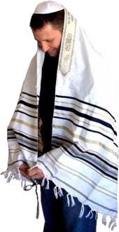 TALIT – Manto de oração que separa o homem do mundo físico e o liga ao mundo espiritual. Ao olhar para ele, os judeus se recordam das leis de Deus, da responsabilidade em obedecê-las e de que foram chamados para serem santos.