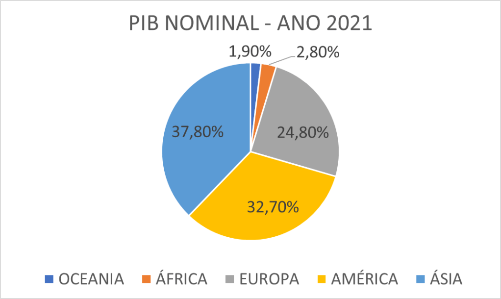 O PIB (Produto interno Bruto) é a soma do valor bruto agregado por todos os produtores residentes na economia mais todos os impostos de produtos e menos quaisquer subsídeios não incluídos no valor dos produtos. Calcula-se sem fazer deduções de depreciação de bens fabricados ou da exaustão e degradação dos recursos naturais. Agora, comparando a diferença da África em relação ao restante do mundo pelo PIB nominal (calculado a partir dos preços e valores de determinado produto ou serviço no momento em que foram produzidos, já o PIB real, mede o volume físico de um produto ou serviço – isso significa que ele não considera a inflação):