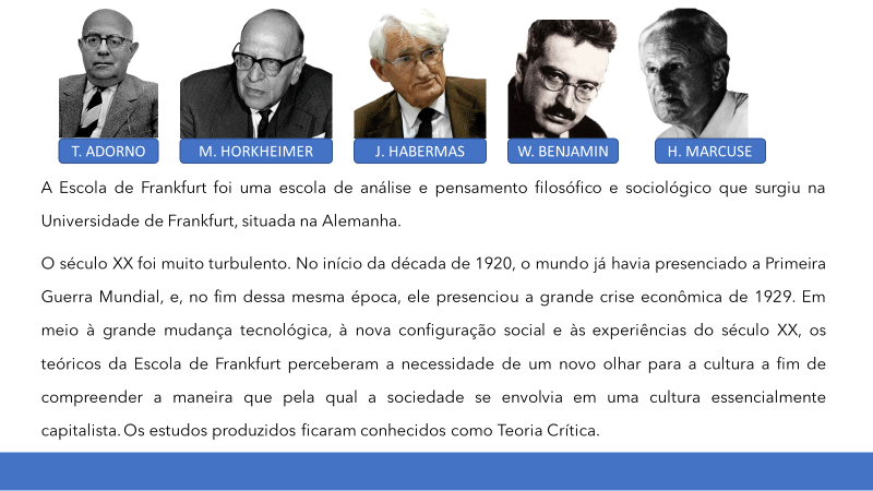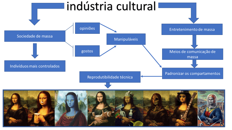 Segundo Adorno e Horkheimer havia dois tipos de cultura autêntica: a cultura erudita e a cultura popular e uma inautêntica, a cultura de massa: