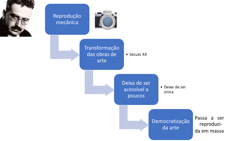 A cultura de massa. Diferente dos outros dois tipos, esta é inautêntica. Fruto de uma fusão de elementos da cultura erudita e da popular e da possibilidade de alta reprodutibilidade técnica, a cultura de massa seria um recurso capitalista para vender uma forma inferior de arte que, ao mesmo tempo, manteria a população sob controle. [Transformação da arte em mercadoria]