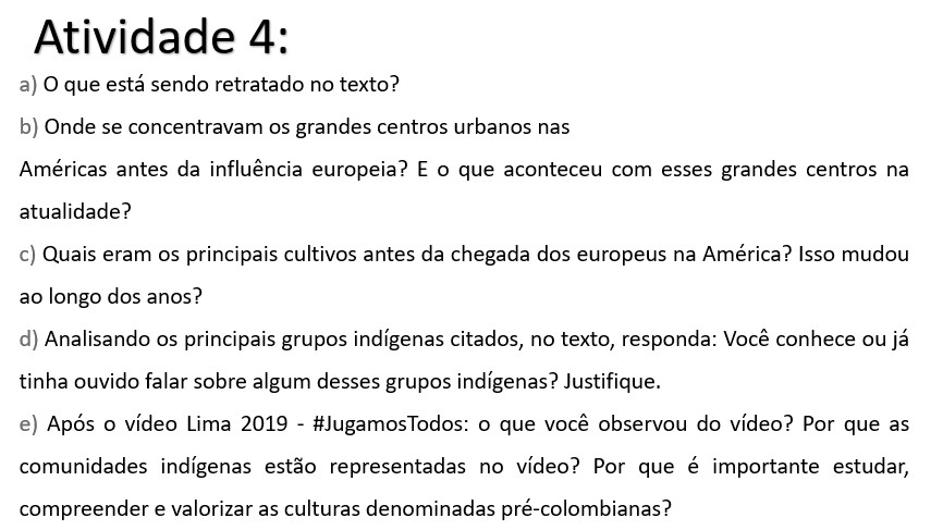 Para tal classificação foram observados os tipos de habitação, remos de embarcações, alimentação, vestuário, cultura da mandioca, obtenção do fogo, tecido, uso de trombeta. Três Impérios — Inca, Maia e Asteca, o primeiro no Peru, o segundo na América Central e o terceiro no México — distinguiram-se dos demais pela organização política, religião, monumentos materiais e espirituais, sistema de vida, comércio, produção artística e literária, conhecimento da matemática e da astronomia. A cidade de Cuzco era a capital do Império Inca, e Tenochtitlán, a do Império Asteca. À chegada dos espanhóis, o Império Maia estava em decadência.