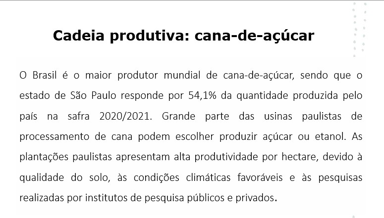 Cadeia produtiva é um conjunto de atividades pelo qual passam os insumos*, desde a matéria-prima até a sua transformação em produto final (bens ou serviços), chegando até a sua colocação no mercado. Isto é, essa cadeia envolve todas as etapas necessárias para transformar matérias-primas em produtos acabados e distribuí-los aos clientes.