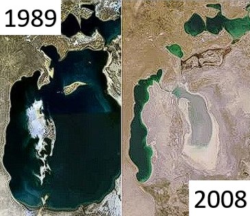 Até a década de 1960 sua área era de aproximadamente 68.000 km². Era o 4º maior lago do planeta. A salinização do lago aconteceu pelo desvio das águas dos rios, utilizadas para irrigação da agricultura local (especialmente o plantio de algodão).