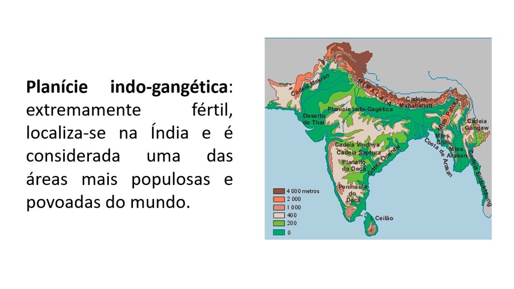 Planície indo-gangética: extremamente fértil, localiza-se na Índia e é considerada uma das áreas mais populosas e povoadas do mundo.