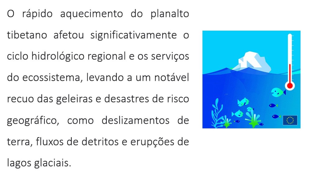 O rápido aquecimento do planalto tibetano afetou significativamente o ciclo hidrológico regional e os serviços do ecossistema, levando a um notável recuo das geleiras e desastres de risco geográfico, como deslizamentos de terra, fluxos de detritos e erupções de lagos glaciais.