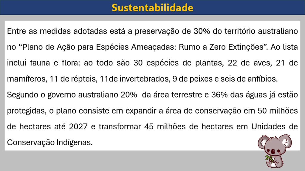 •Australia (Associação Mineira de Defesa do Ambiente) – https://amda.org.br/noticias/6664-australia-anuncia-protecao-de-30-do-seu-territorio-ate-2032/