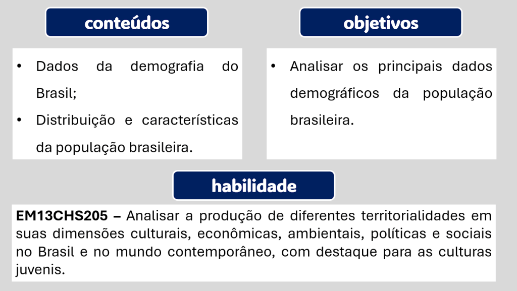 Transição demográfica (fases): Dados do Censo IBGE e FMI (para França e Mali) Censo IBGE – Raça e Cor slides-aula Panorama do Censo 2022Baixar Arquivo CMSP Aula 2 – Demografia brasileiraBaixar Compartilhe isso:Tweet Compartilhar no WhatsApp(abre em nova janela) WhatsApp Imprimir(abre em nova janela) Imprimir Envie um link por e-mail para um amigo(abre em nova janela) E-mail Curtir Carregando... Relacionado Publicado por Profa. Débora Conteúdo de Ciências Humanas e Sociais Aplicadas para o Ensino Médio Ver todos os posts de Profa. Débora