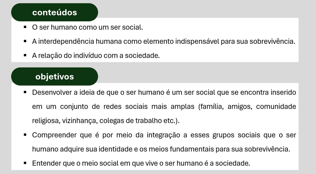 Referências bibliográficas: SILVA, A. et al. Sociologia em movimento. São Paulo: Moderna, 2016. Arquivo CMSP Aula 3 – O ser humano é um ser socialBaixar Compartilhe isso:Tweet Clique para compartilhar no WhatsApp(abre em nova janela) WhatsApp Clique para imprimir(abre em nova janela) Imprimir Clique para enviar um link por e-mail para um amigo(abre em nova janela) E-mail Curtir Carregando... Relacionado Publicado por Profa. Débora Conteúdo de Ciências Humanas e Sociais Aplicadas para o Ensino Médio Ver todos os posts de Profa. Débora