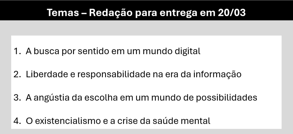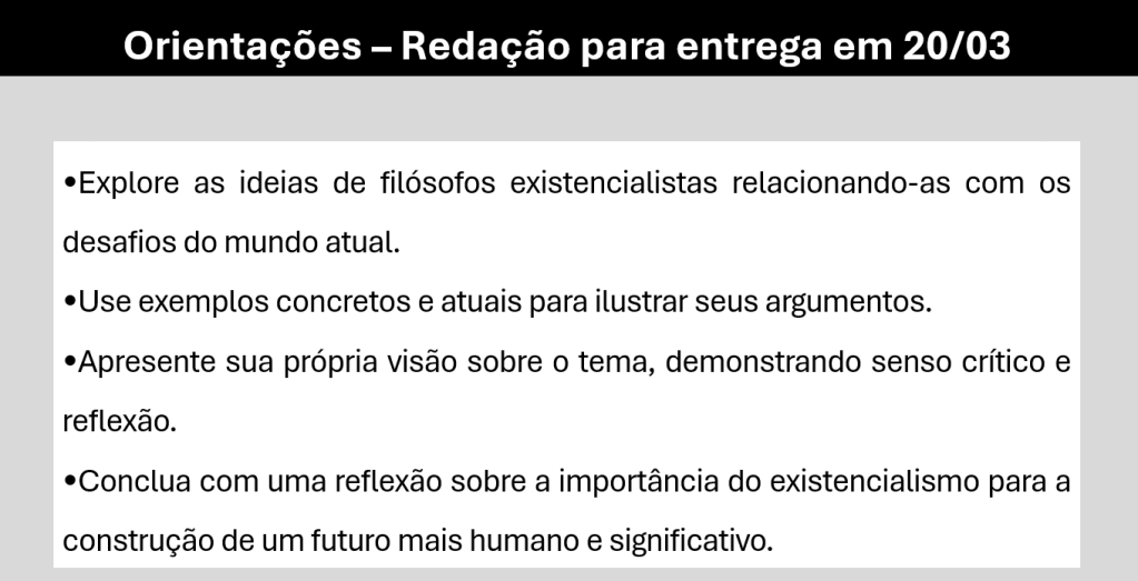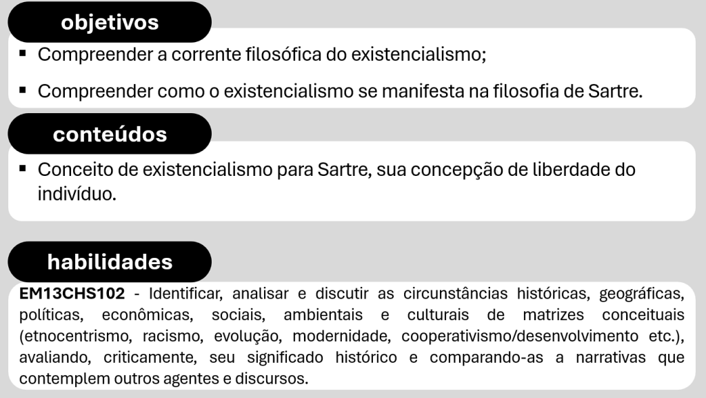 atividade Arquivo CMSP Aula 7 – O existencialismo em SartreBaixar Compartilhe isso:Tweet Clique para compartilhar no WhatsApp(abre em nova janela) WhatsApp Clique para imprimir(abre em nova janela) Imprimir Clique para enviar um link por e-mail para um amigo(abre em nova janela) E-mail Curtir Carregando... Relacionado Publicado por Profa. Débora Conteúdo de Ciências Humanas e Sociais Aplicadas para o Ensino Médio Ver todos os posts de Profa. Débora