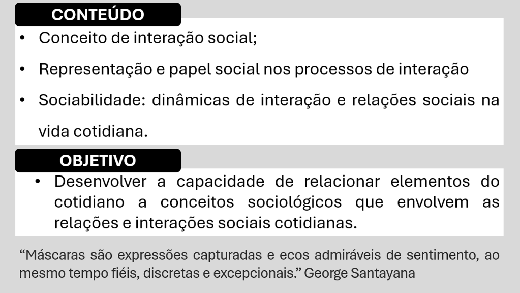 Arquivo CMSP Aula 7 – Alguém com os outros – relações e interações sociais na vida cotidianaBaixar Compartilhe isso:Tweet Compartilhar no WhatsApp(abre em nova janela) WhatsApp Imprimir(abre em nova janela) Imprimir Envie um link por e-mail para um amigo(abre em nova janela) E-mail Curtir Carregando... Relacionado Publicado por Profa. Débora Conteúdo de Ciências Humanas e Sociais Aplicadas para o Ensino Médio Ver todos os posts de Profa. Débora