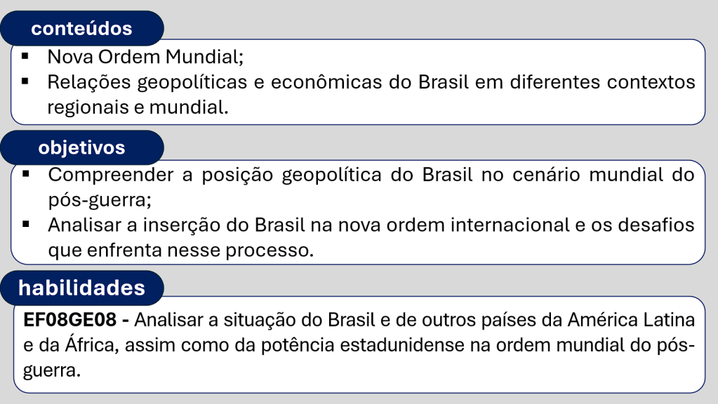 Arquivo CMSP Aula 2 – O Brasil na Nova Ordem MundialBaixar Compartilhe isso:Tweet Clique para compartilhar no WhatsApp(abre em nova janela) WhatsApp Clique para imprimir(abre em nova janela) Imprimir Clique para enviar um link por e-mail para um amigo(abre em nova janela) E-mail Curtir Carregando... Relacionado Publicado por Profa. Débora Conteúdo de Ciências Humanas e Sociais Aplicadas para o Ensino Médio Ver todos os posts de Profa. Débora