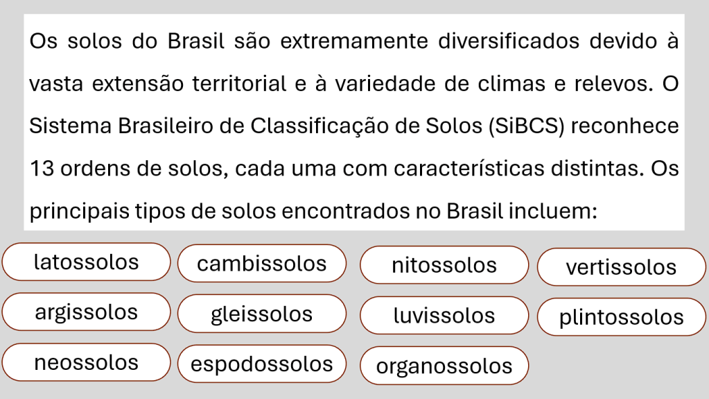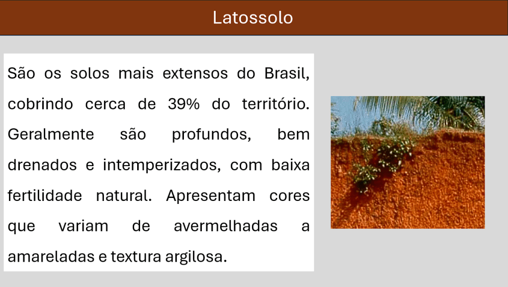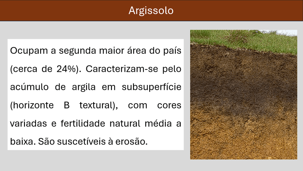 Fonte: IBGE, Diretoria de Geociências, Coordenação de Meio Ambiente Arquivo CMSP Aula 2 – Solos do BrasilBaixar Compartilhe isso:Tweet Clique para compartilhar no WhatsApp(abre em nova janela) WhatsApp Clique para imprimir(abre em nova janela) Imprimir Clique para enviar um link por e-mail para um amigo(abre em nova janela) E-mail Curtir Carregando... Relacionado Publicado por Profa. Débora Conteúdo de Ciências Humanas e Sociais Aplicadas para o Ensino Médio Ver todos os posts de Profa. Débora