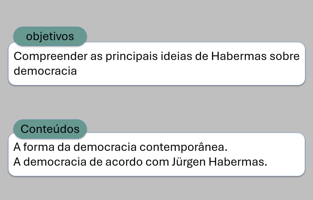 Arquivo CMSP Aula 1 – Democracia contemporânea – Jurgen HabermasBaixar Compartilhe isso:Tweet Compartilhar no WhatsApp(abre em nova janela) WhatsApp Imprimir(abre em nova janela) Imprimir Envie um link por e-mail para um amigo(abre em nova janela) E-mail Curtir Carregando... Relacionado Publicado por Profa. Débora Conteúdo de Ciências Humanas e Sociais Aplicadas para o Ensino Médio Ver todos os posts de Profa. Débora