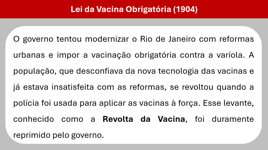 Momentos da Política Brasileira Arquivo CMSP Aula 2 – Qualificando nossa política contemporâneaBaixar Referências: A REVOLTA DA VACINA: TRADIÇÃO X CIÊNCIA Compartilhe isso:Tweet Compartilhar no WhatsApp(abre em nova janela) WhatsApp Imprimir(abre em nova janela) Imprimir Envie um link por e-mail para um amigo(abre em nova janela) E-mail Curtir Carregando... Relacionado Publicado por Profa. Débora Conteúdo de Ciências Humanas e Sociais Aplicadas para o Ensino Médio Ver todos os posts de Profa. Débora