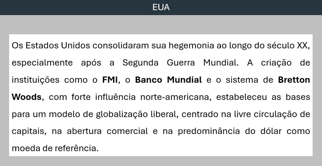 Arquivo CMSP Aula 3 – Potências econômicas – EUA e ChinaBaixar Compartilhe isso:Tweet Clique para compartilhar no WhatsApp(abre em nova janela) WhatsApp Clique para imprimir(abre em nova janela) Imprimir Clique para enviar um link por e-mail para um amigo(abre em nova janela) E-mail Curtir Carregando... Relacionado Publicado por Profa. Débora Conteúdo de Ciências Humanas e Sociais Aplicadas para o Ensino Médio Ver todos os posts de Profa. Débora