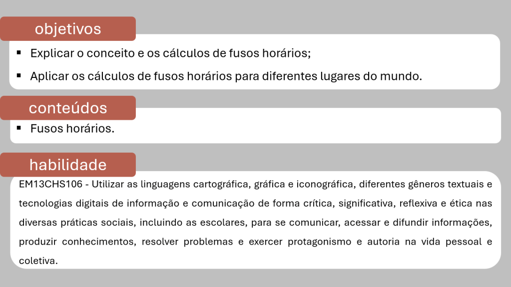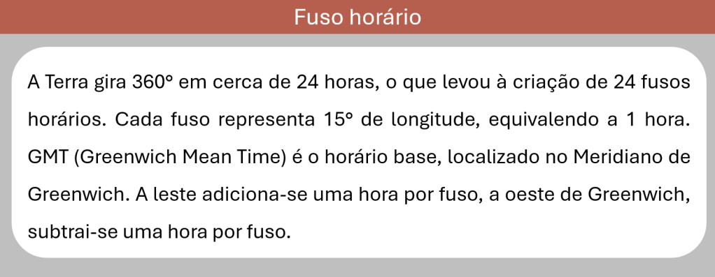 Arquivo CMSP Aula 5 – Fusos HoráriosBaixar Compartilhe isso:Tweet Clique para compartilhar no WhatsApp(abre em nova janela) WhatsApp Clique para imprimir(abre em nova janela) Imprimir Clique para enviar um link por e-mail para um amigo(abre em nova janela) E-mail Curtir Carregando... Relacionado Publicado por Profa. Débora Conteúdo de Ciências Humanas e Sociais Aplicadas para o Ensino Médio Ver todos os posts de Profa. Débora