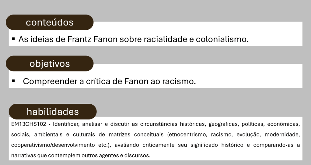 analisando a pintura: atividade Arquivo CMSP Aula 5 – A emergência de novos atores sociais Frantz FanonBaixar Compartilhe isso:Tweet Compartilhar no WhatsApp(abre em nova janela) WhatsApp Imprimir(abre em nova janela) Imprimir Envie um link por e-mail para um amigo(abre em nova janela) E-mail Curtir Carregando... Relacionado Publicado por Profa. Débora Conteúdo de Ciências Humanas e Sociais Aplicadas para o Ensino Médio Ver todos os posts de Profa. Débora