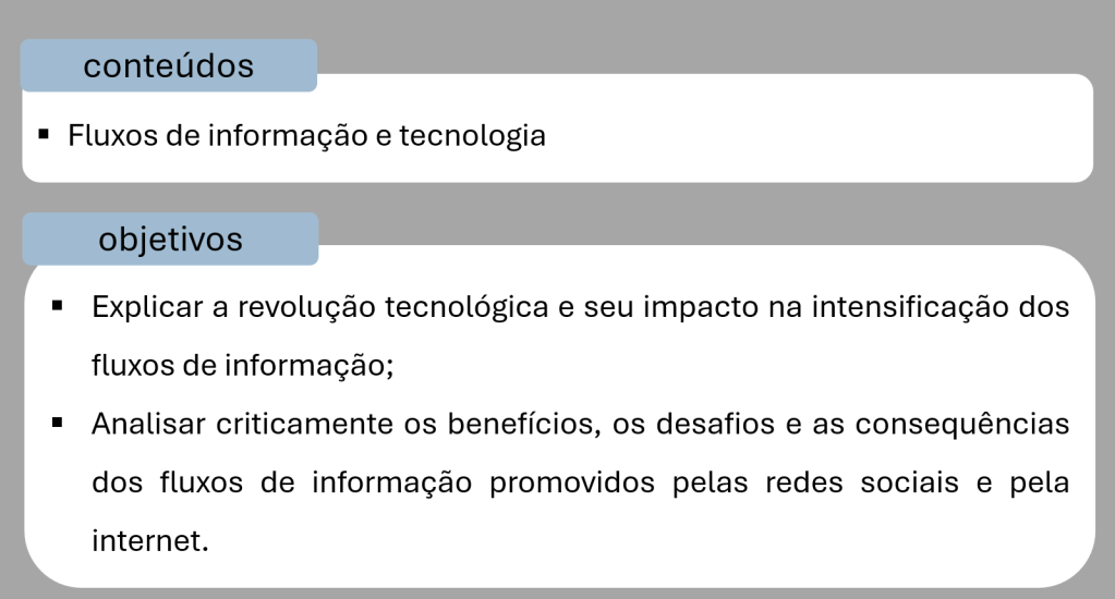 Arquivo CMSP Aula 2 – Fluxos de informação e tecnologiaBaixar Compartilhe isso:Tweet Compartilhar no WhatsApp(abre em nova janela) WhatsApp Imprimir(abre em nova janela) Imprimir Envie um link por e-mail para um amigo(abre em nova janela) E-mail Curtir Carregando... Relacionado Publicado por Profa. Débora Conteúdo de Ciências Humanas e Sociais Aplicadas para o Ensino Médio Ver todos os posts de Profa. Débora