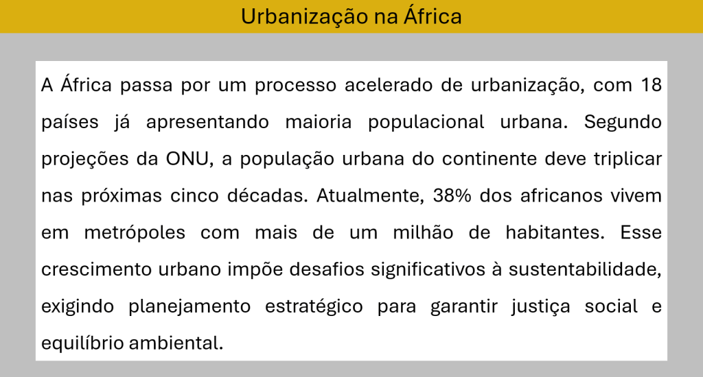 Arquivo CMSP Aula 2 – Urbanização no continente africanoBaixar Compartilhe isso:Tweet Compartilhar no WhatsApp(abre em nova janela) WhatsApp Imprimir(abre em nova janela) Imprimir Envie um link por e-mail para um amigo(abre em nova janela) E-mail Curtir Carregando... Relacionado Publicado por Profa. Débora Conteúdo de Ciências Humanas e Sociais Aplicadas para o Ensino Médio Ver todos os posts de Profa. Débora