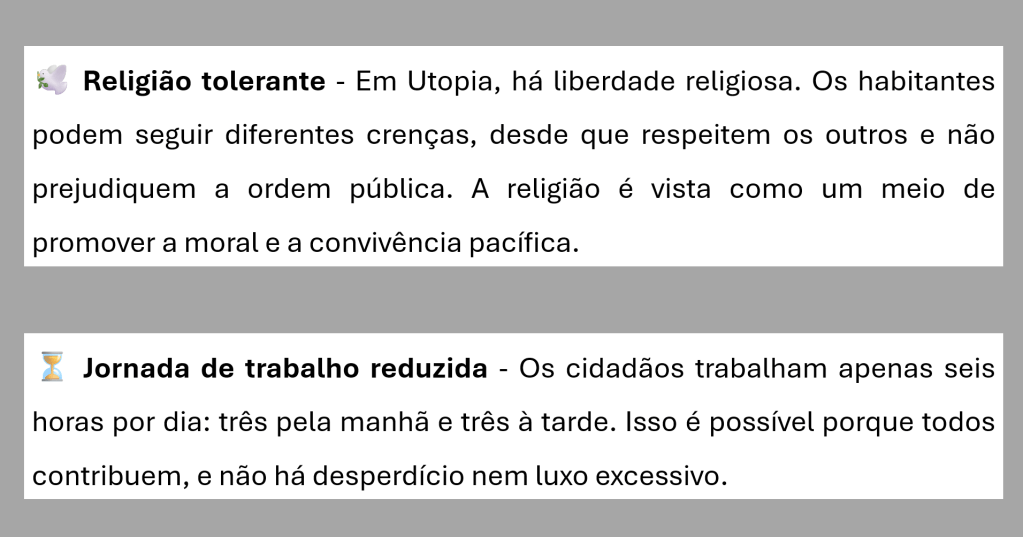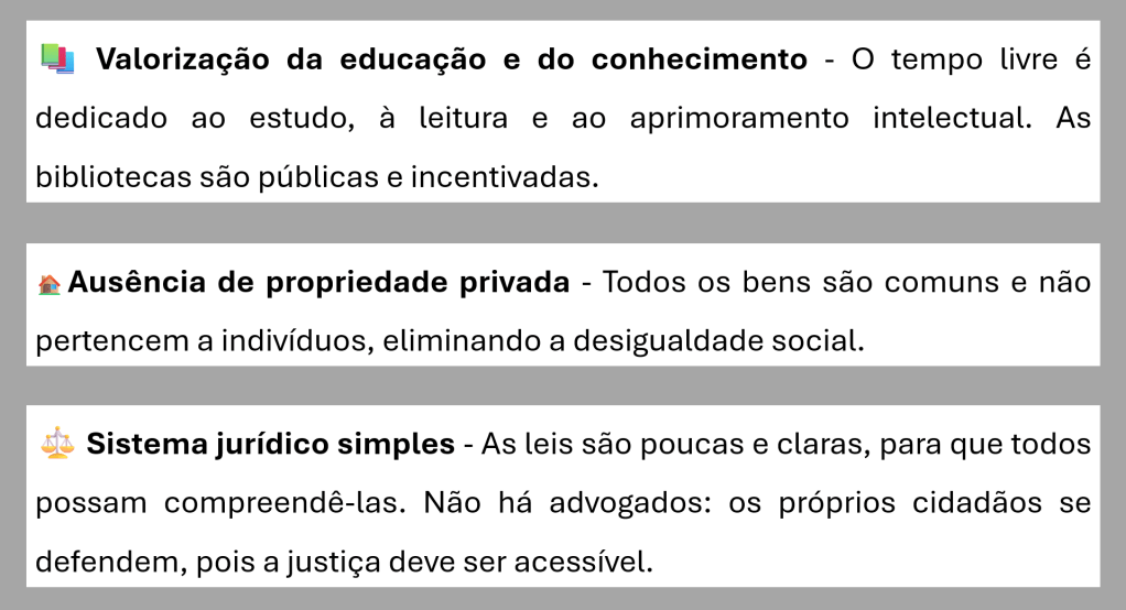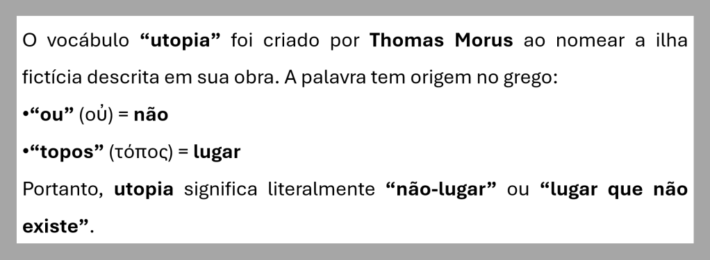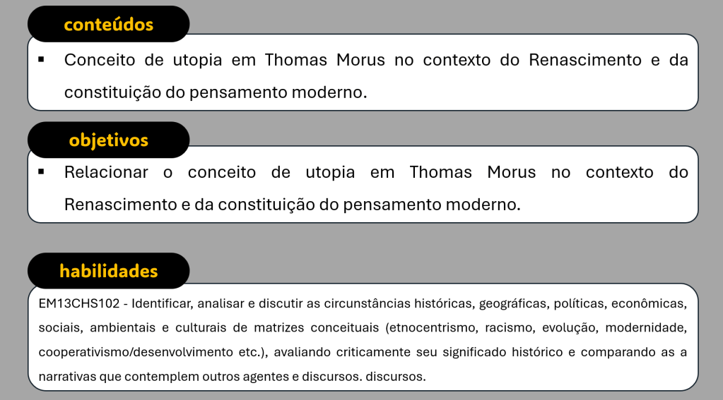Dividida em duas partes Principais características de Utopia Principais Pontos Arquivo CMSP Aula 3 – Utopia moderna – Thomas MorusBaixar Compartilhe isso:Tweet Compartilhar no WhatsApp(abre em nova janela) WhatsApp Imprimir(abre em nova janela) Imprimir Envie um link por e-mail para um amigo(abre em nova janela) E-mail Curtir Carregando... Relacionado Publicado por Profa. Débora Conteúdo de Ciências Humanas e Sociais Aplicadas para o Ensino Médio Ver todos os posts de Profa. Débora