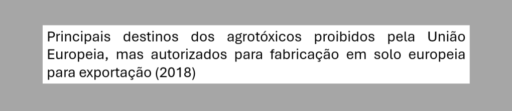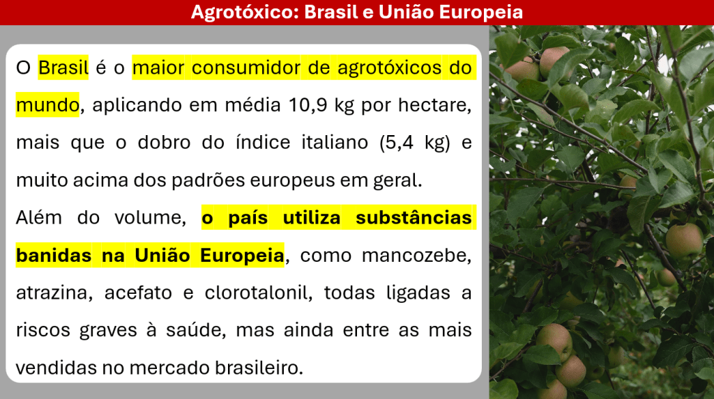 Dados e imagens da Agência Pública: Brasil é o 2º maior comprador de agrtóxicos proibidos na Europa, que importa alimentos produzidos com estes químicos Aula 9 – Segurança alimentarBaixar Compartilhe isso:Tweet Compartilhar no WhatsApp(abre em nova janela) WhatsApp Imprimir(abre em nova janela) Imprimir Envie um link por e-mail para um amigo(abre em nova janela) E-mail Curtir Carregando... Relacionado Publicado por Profa. Débora Conteúdo de Ciências Humanas e Sociais Aplicadas para o Ensino Médio Ver todos os posts de Profa. Débora